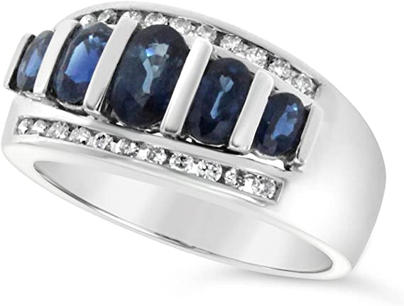DETAILS - This 14k white gold ring features an oval blue sapphire birthstone of september in a 5 stone graduated setting with diamond accents.