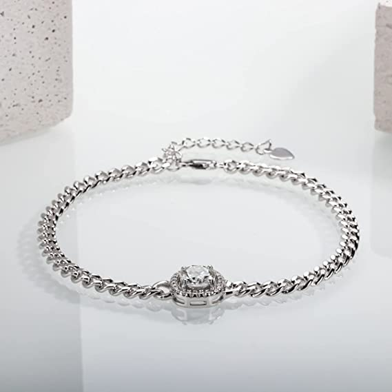 AnuClub Moissanite Cuban Bracelet,1ct D Color Lab Created Diamond 925 Sterling Silver Adjustable Bracelet With GRA Certificate
